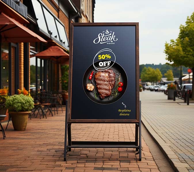 Vanjski znakovi izvrsni su alati za oglašavanje proizvoda, usluga ili posebnih promocija. Mogu doseći široku publiku, potičući potencijalne kupce da posjete vašu trgovinu, poduzeće.
